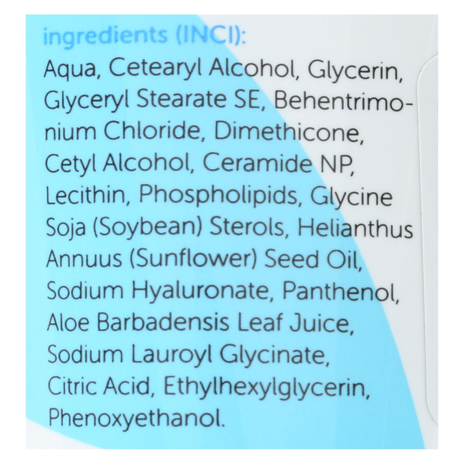 ingredients : aqua;cetearyl alcohol;glycerin;glyceryl stearate se;behentrimonium chloride;dimethicone;cetyl alcohol;ceramide np;lecithin;phospholipids;glycine soja;soybean;sterols;helianthus annuus;sunflower;seed oil;sodium hyaluronate;panthenol;aloe barbadensis leaf juice;sodium lauroyl glycinate;citric acid;ethylhexylglycerin;phenoxyethanol