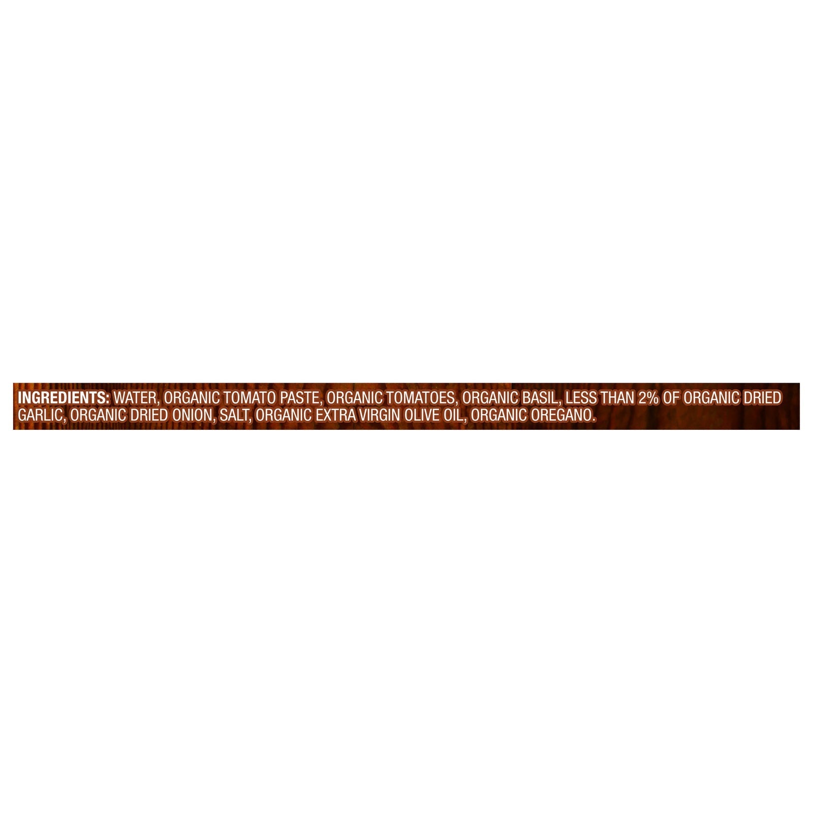 ingredients : water;organic tomato paste;organic tomatoes;organic basil;less than 2% of organic dried garlic;organic dried onion;salt;organic extra virgin olive oil;organic oregano