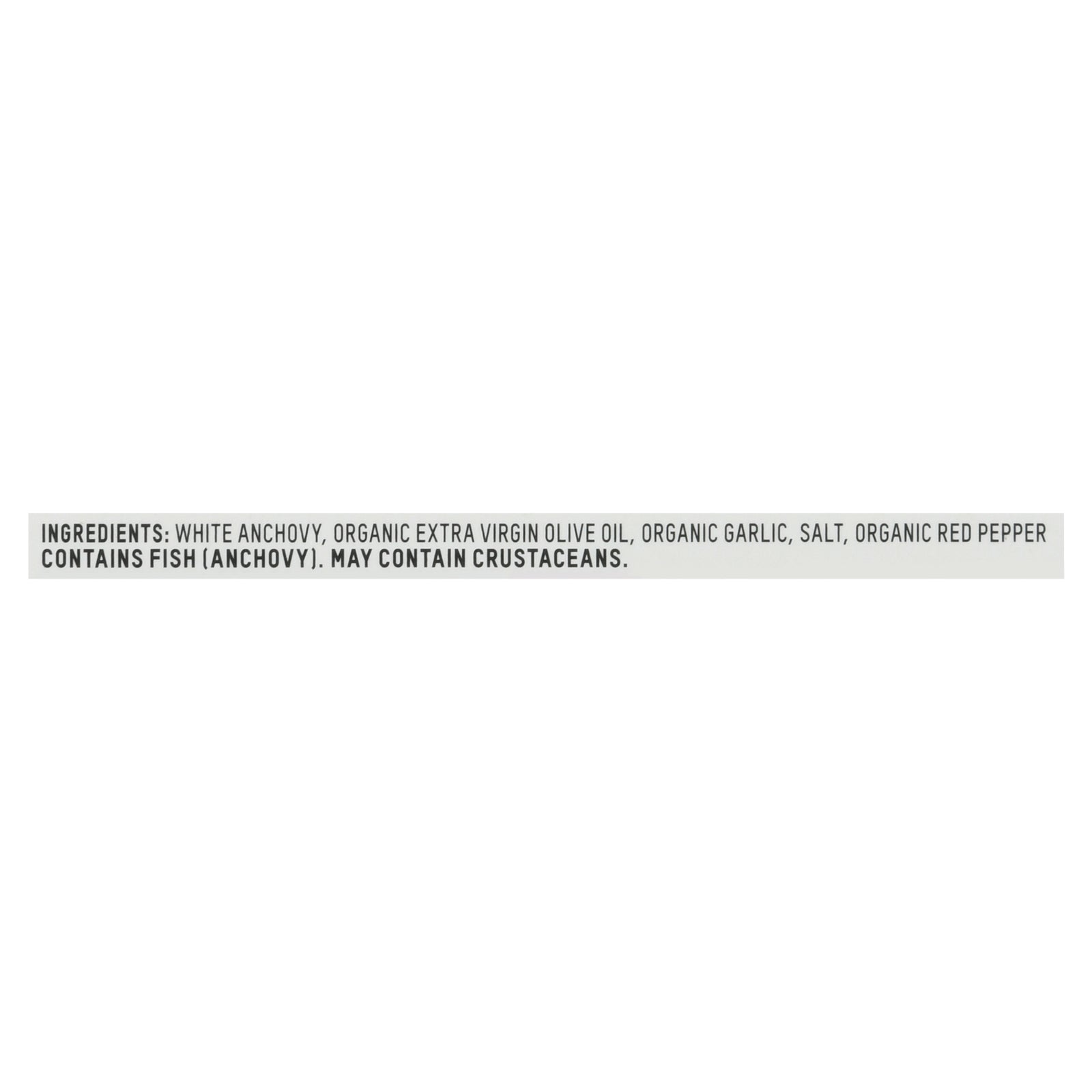 ingredients : white anchovy;organic extra virgin olive oil;organic garlic;salt;organic red pepper