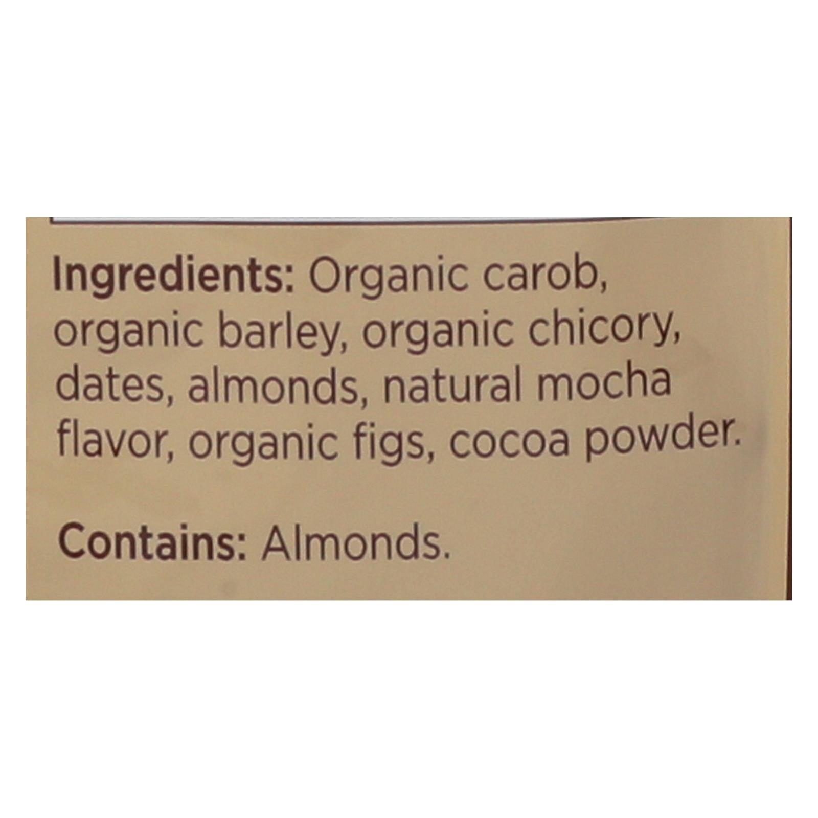 ingredients : organic carob;organic barley;organic chicory;dates;almonds;natural mocha flavor;organic figs;cocoa powder