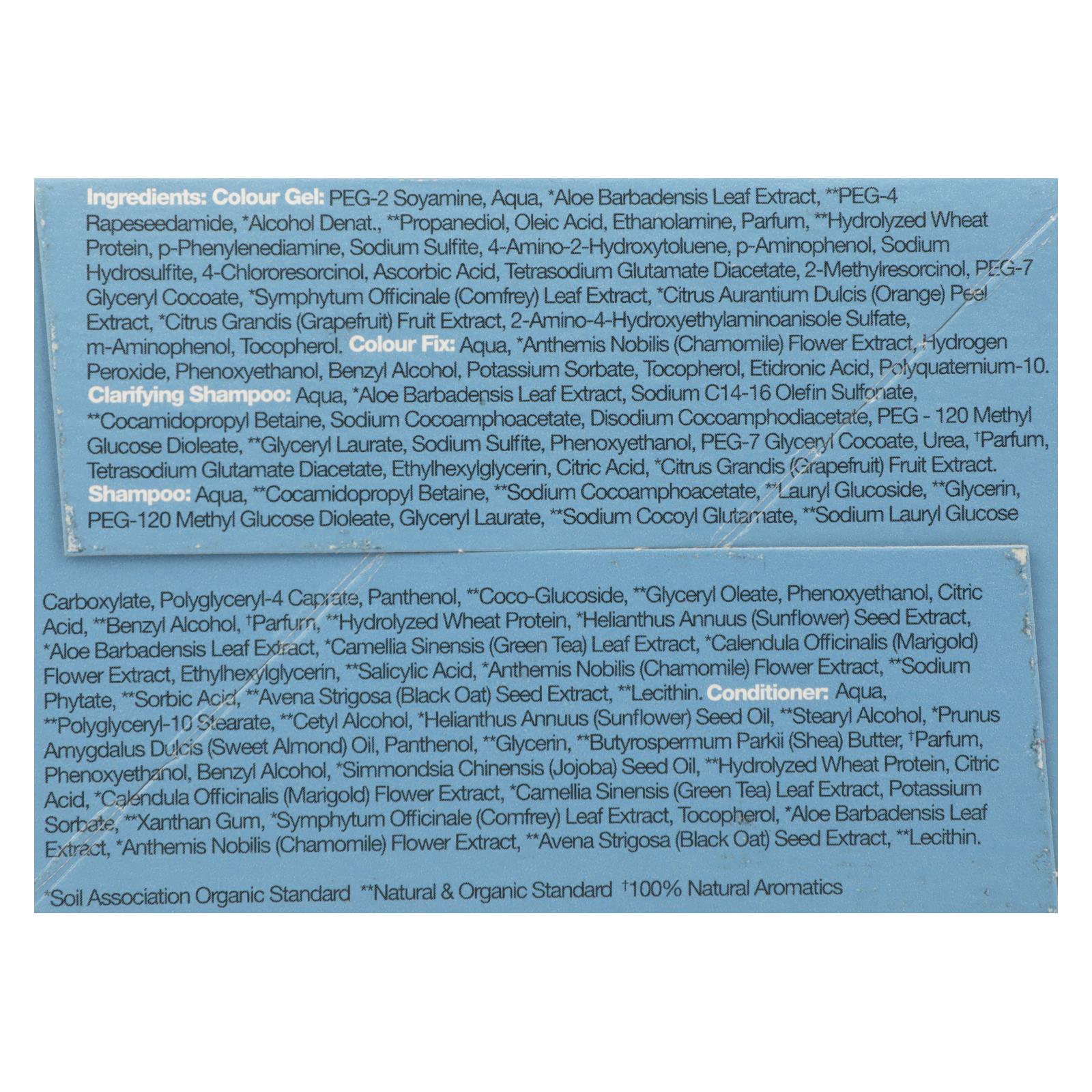 ingredients : colour gel: peg-2 soyamine;aqua;aloe barbadensis leaf extract;peg-4 rapeseedamide;alcohol denat;propanediol;oleic acid;ethanolamine;parfum;hydrolyzed wheat protein;p-phenylenediamine;sodium sulfite;4-amino-2-hydroxytoluene;p-aminophenol;sodium hydrosulfite;4-chlororesorcinol;ascorbic acid;tetrasodium glutamate;diacetate;2-methylresorcinol;peg-7 glyceryl cocoate;symphytum officinale;comfrey;leaf extract;citrus aurantium dulcis;orange;peel extract;citrus grandis;grapefruit;fruit extract;2-amino-4-