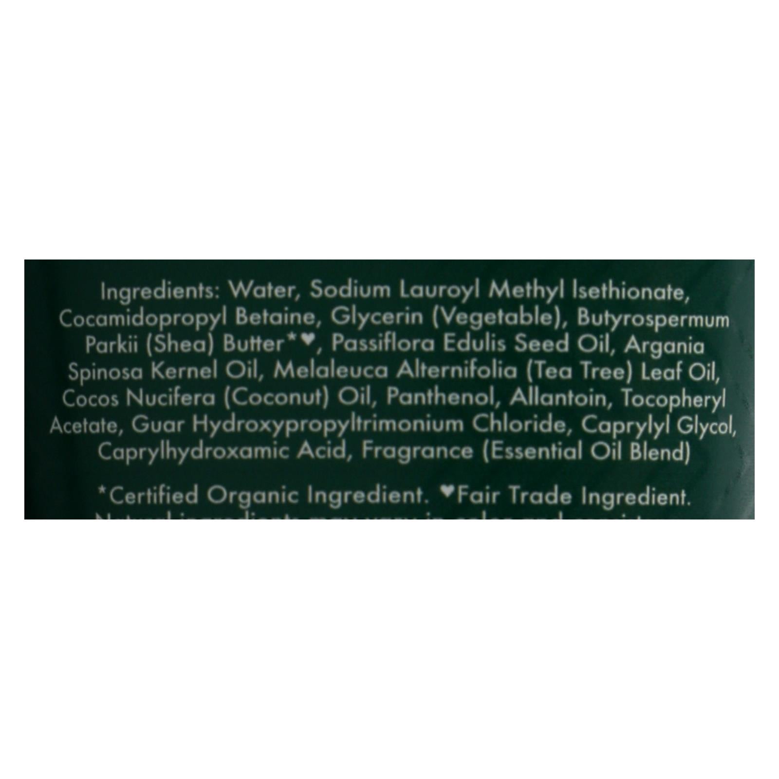 ingredients : water;sodium lauroyl methyl isethionate;cocamidopropyl betaine;glycerin;vegetable;butyrospermum parkii;shea;butter*♥;passiflora edulis seed oil;argania spinosa kernel oil;melaleuca alternifolia;tea tree;leaf oil;cocos nucifera;coconut;oil;panthenol;allantoin;tocopheryl acetate;guar hydroxypropyltrimonium chloride;caprylyl glycol;caprylhydroxamic acid;fragrance;essential oil blend