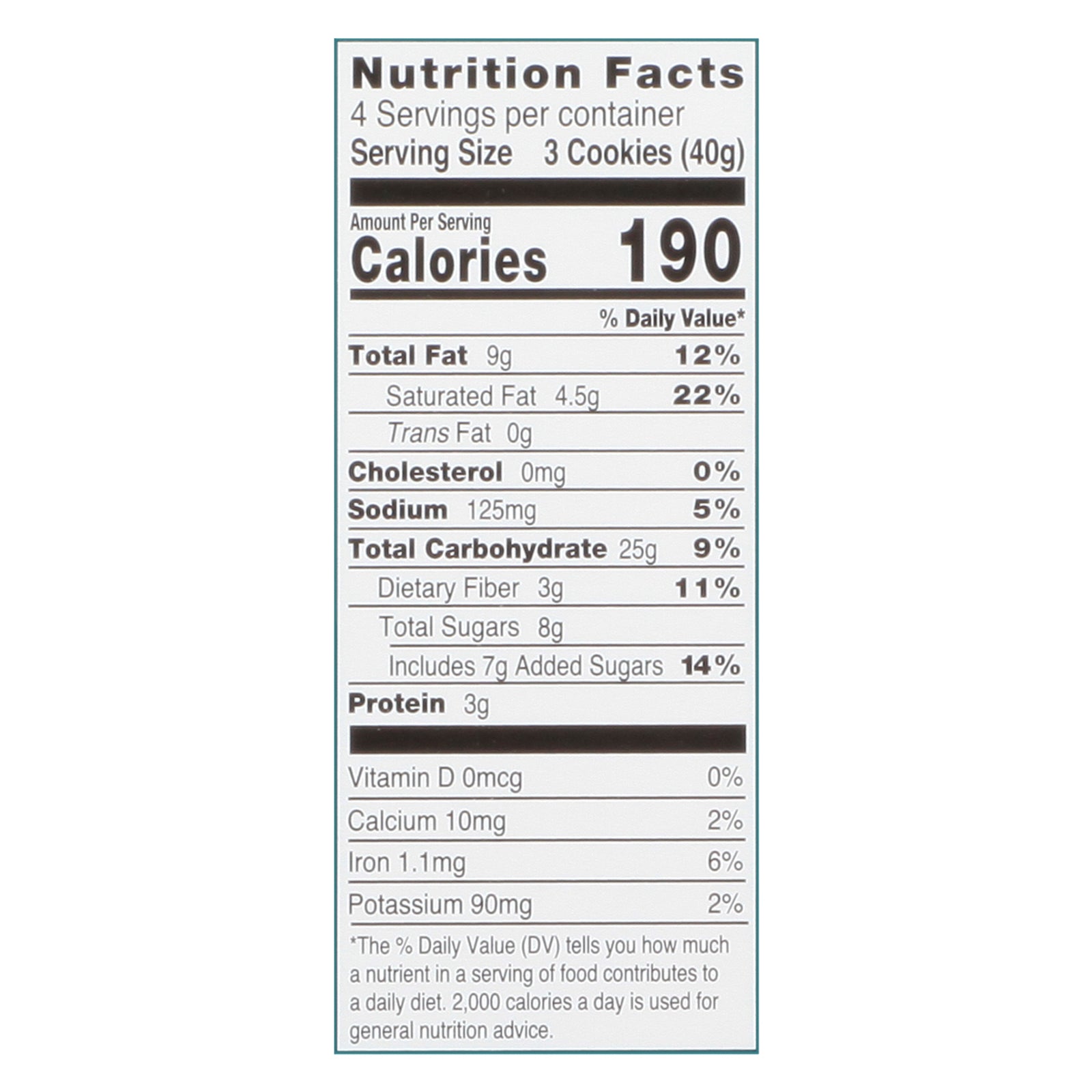 ingredients : gluten free whole grain oats;sustainable palm oil;chocolate chips (sugar, chocolate liquor, cocoa butter, soy lecithin, vanilla flavoring);brown sugar;desiccated coconut;tapioca starch;invert sugar;leavening (sodium bicarbonate, ammonium bicarbonate);natural flavor;sea salt